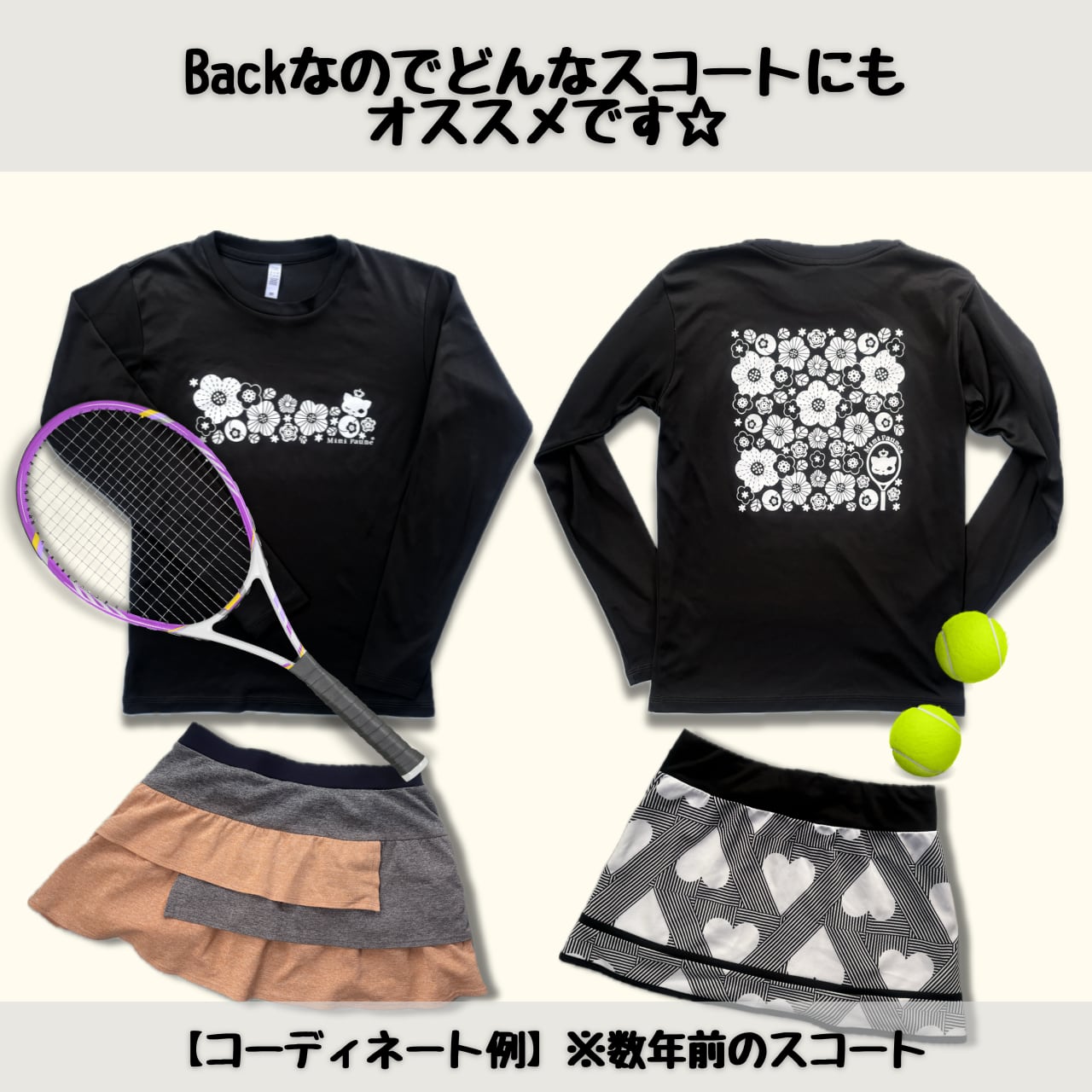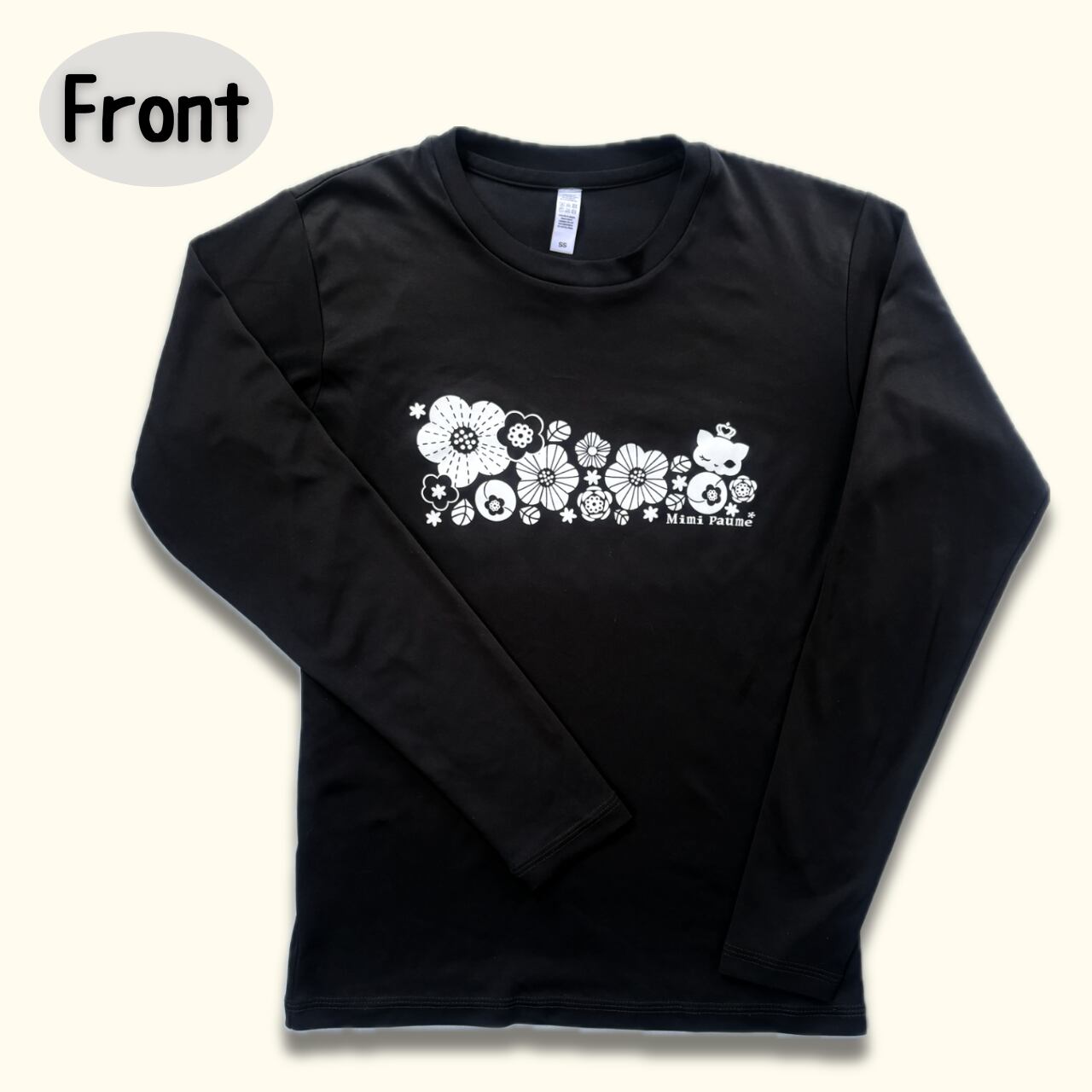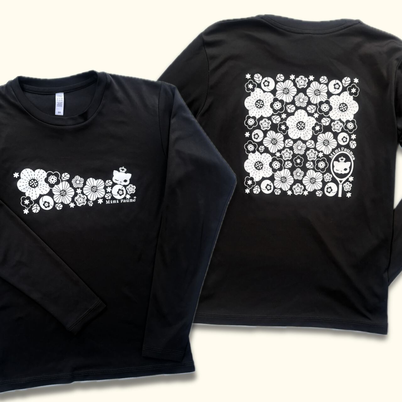 ミミポームオリジナルのモダン花プリントの、3.5ozインターロックドライ長袖Tシャツです。フロントはモダン花&ウィンク猫、バックプリントはさり気なくテニスラケットに猫をデザインしてみました。肌触りの良い素材と、快適な着心地が魅力です。ドライな機能を備えているので、汗を素早く吸収して、乾燥も早いんです。汗ばむ季節でもさらっと快適に過ごせますよ。
